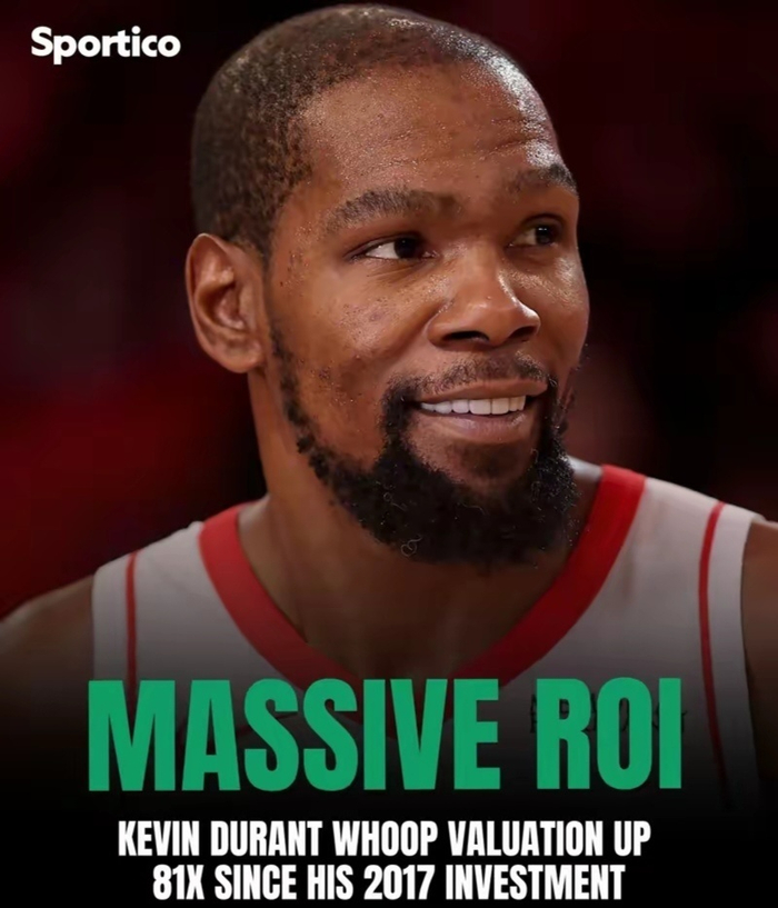 近日,火箭队球星杜兰特在2017年入股的一家健康追踪公司Whoop市值飙升,估值达到了101亿美金,相比较于2017年的一亿多美金足足涨了81倍。